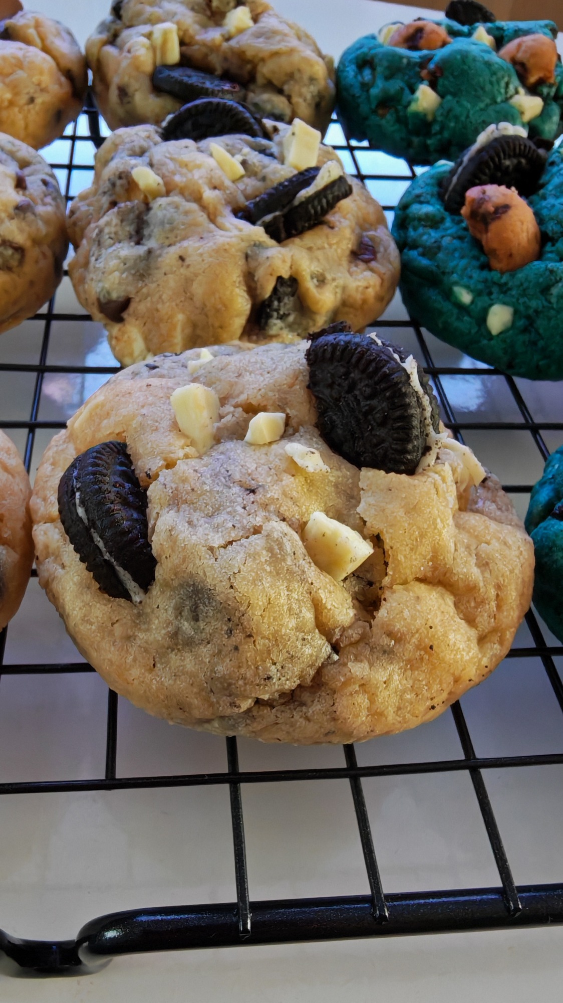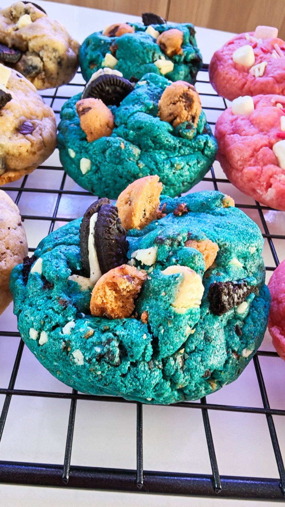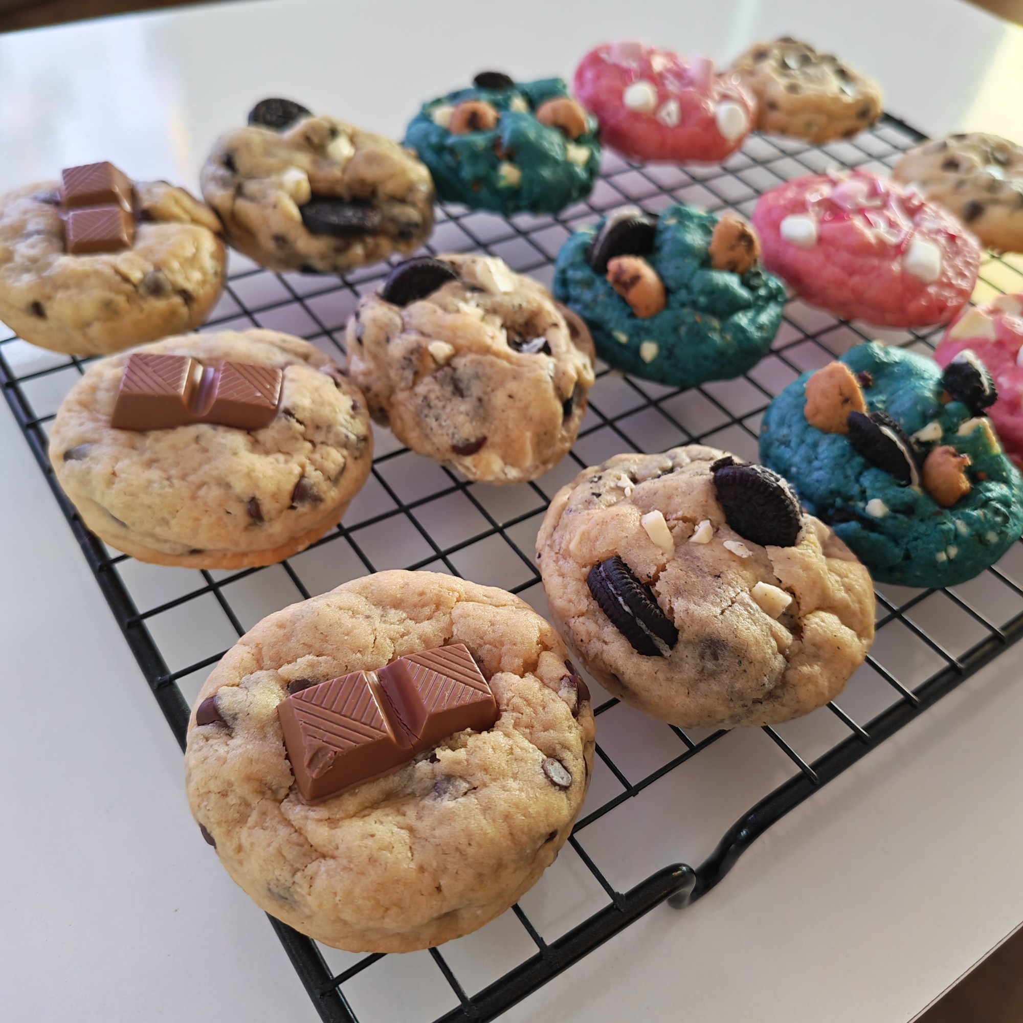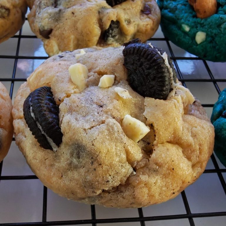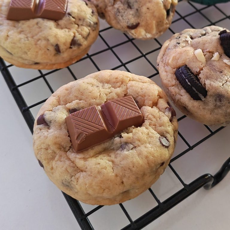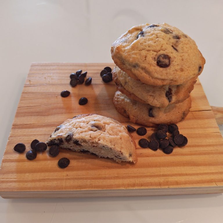 Cada cookie está hecha con ingredientes de alta calidad: mantequilla cremosa, azúcar cuidadosamente equilibrado y abundantes trozos de chocolate que se funden en cada bocado. El resultado es una experiencia única, intensa y reconfortante, perfecta para los verdaderos amantes de los dulces.